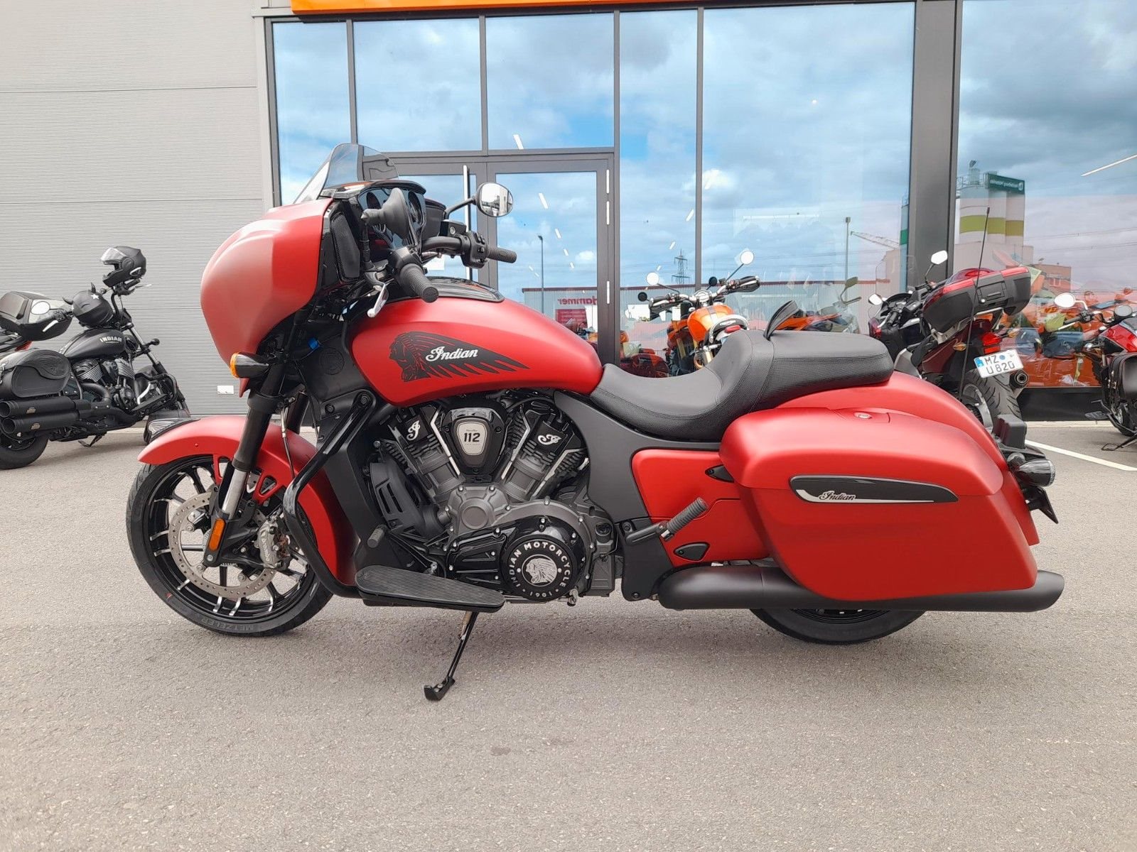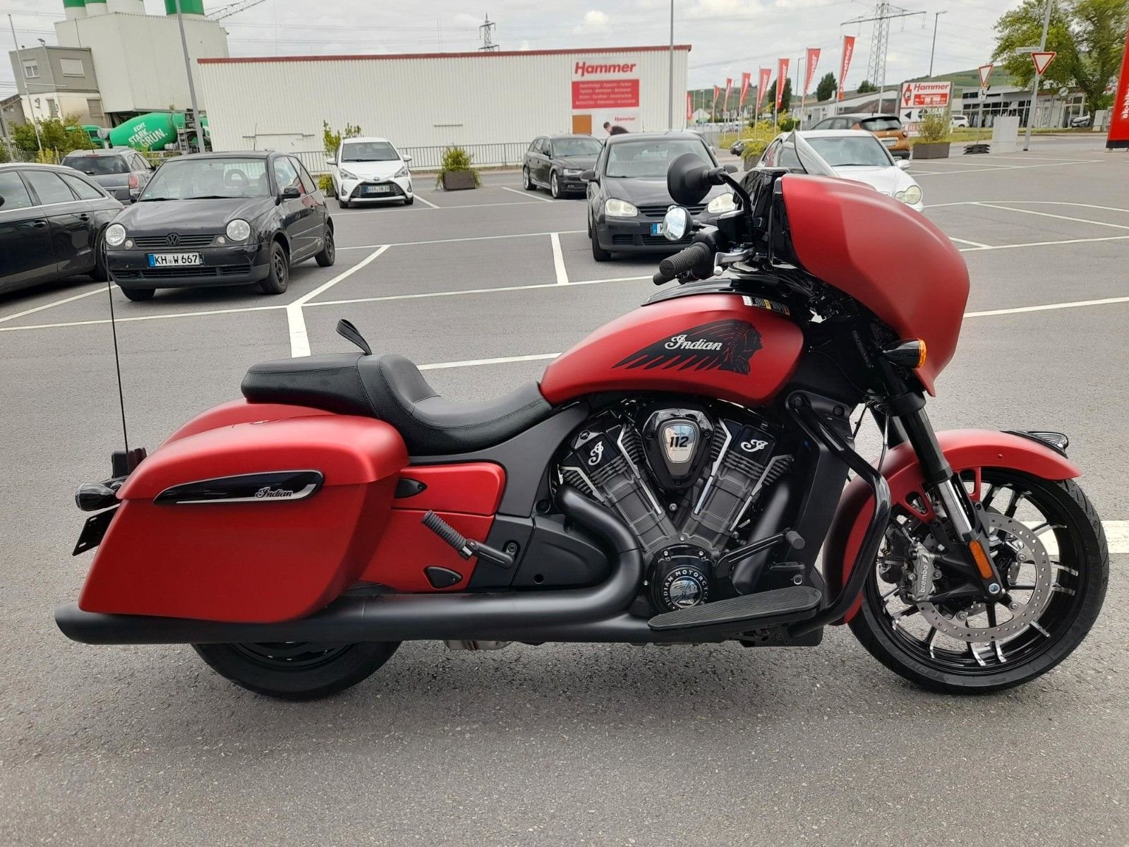 ERSTKLASSIGE AUSSTATTUNG Die Chieftain ist serienmäßig mit LED-Beleuchtung, schlüsselloser Zündung, Tempomat, elektrisch verschließbaren Seitenkoffern, ABS und Reifendruckkontrolle ausgestattet. 7-Zoll-Touchscreen mit RIDE COMMAND inkl. Apple CarPlay-Integration; elektrische Windschutzscheibe; Highway Bars; Vinyl-Rogue-Sitz; Reifendrucküberwachung; fernbedienbare Hard Saddlebags; wählbare Fahrmodi; Deaktivierung des hinteren Zylinders; ABS; Tempomat; schlüssellose Zündung; 100-Watt-Audiosystem mit AM/FM, Bluetooth, USB, Smartphone-kompatiblem Eingang; 12-V-Ladeanschluss