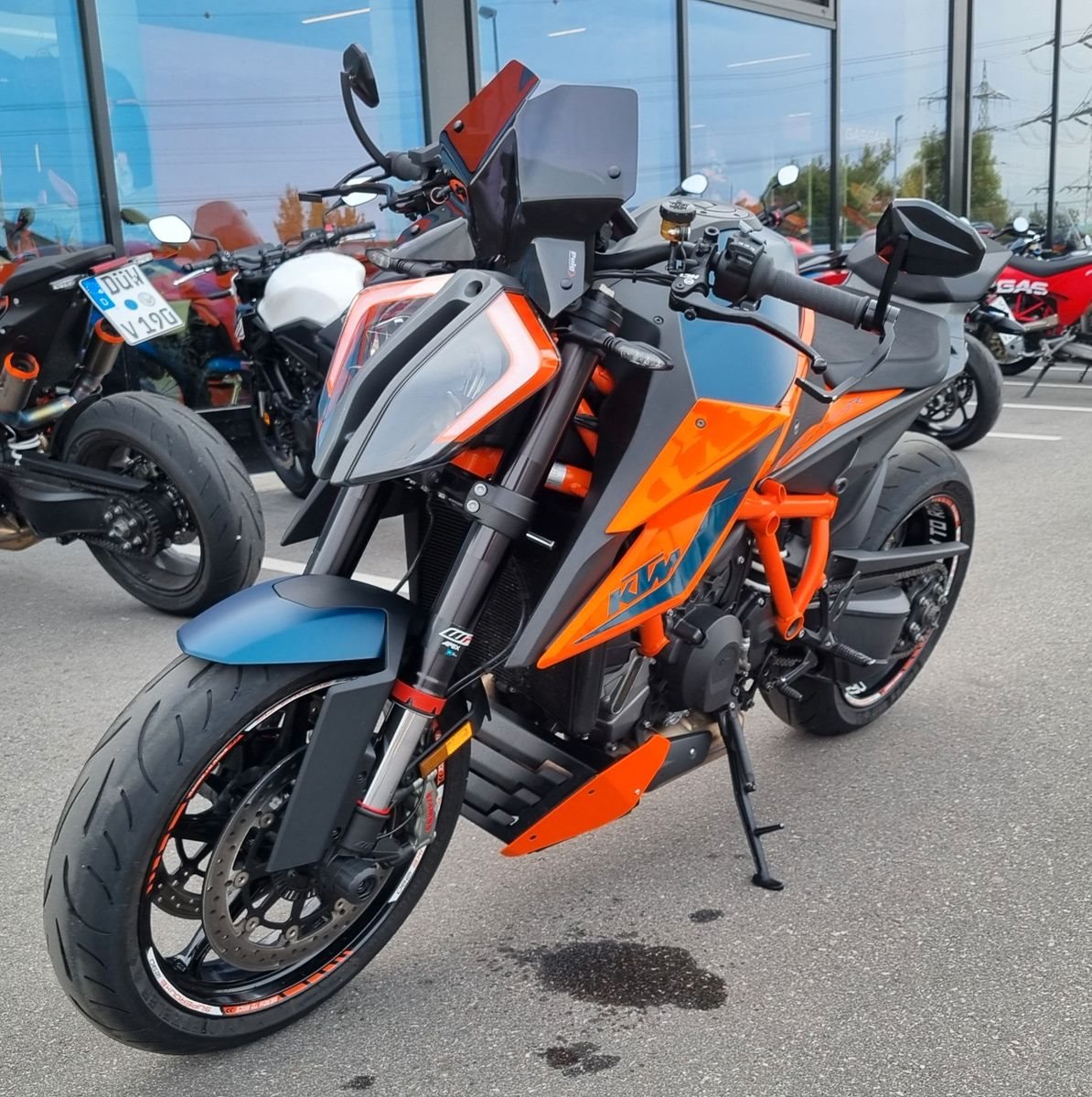 Tech Pack, kurzer Kennzeichenhalter, Windschild, Lenkerendenspiegel, Bugspoiler, Motordeckelschützer, Brems-/Kupplungshebelschützer, Felgendekorsatz