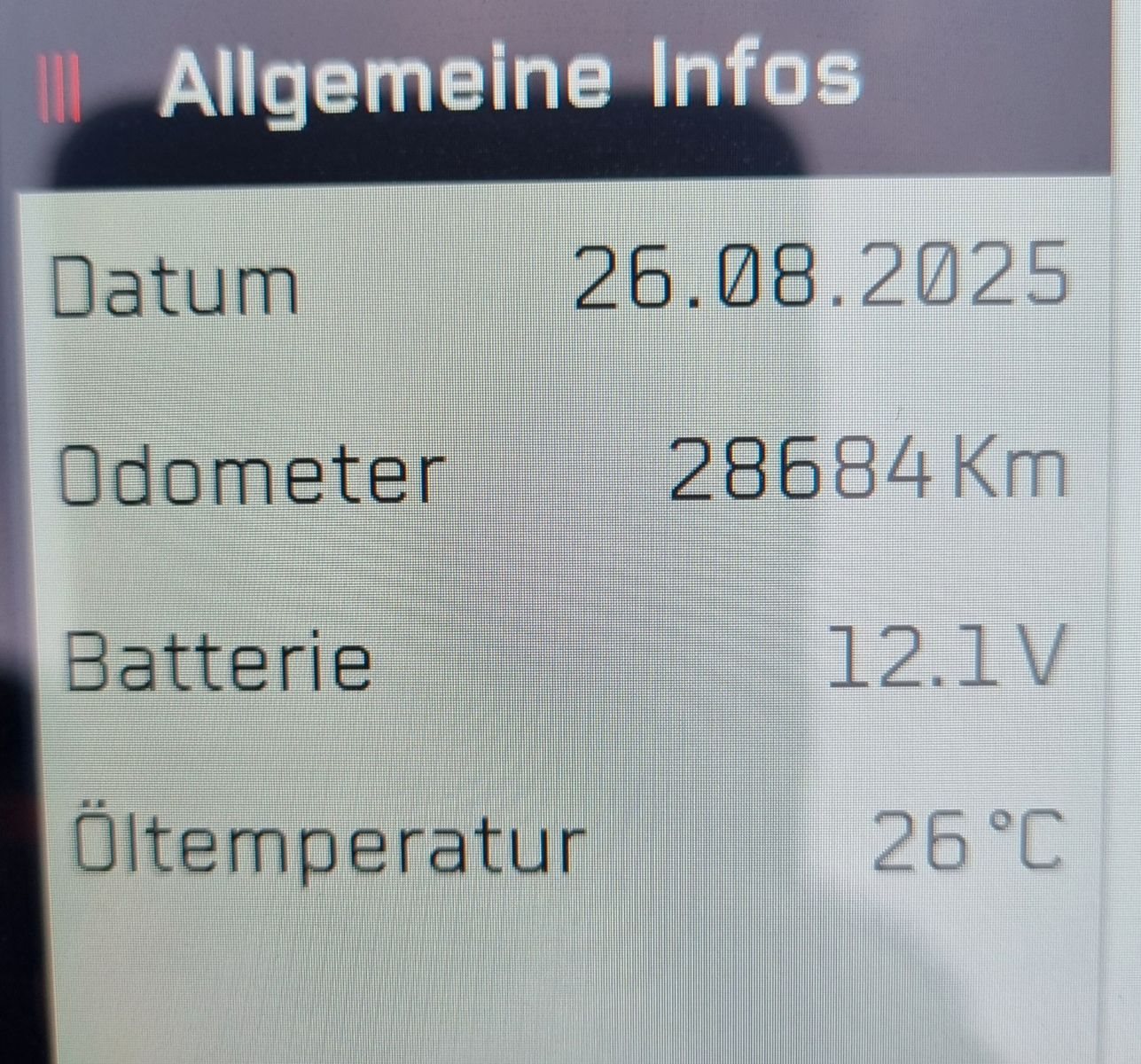 Fahrzeug Daten