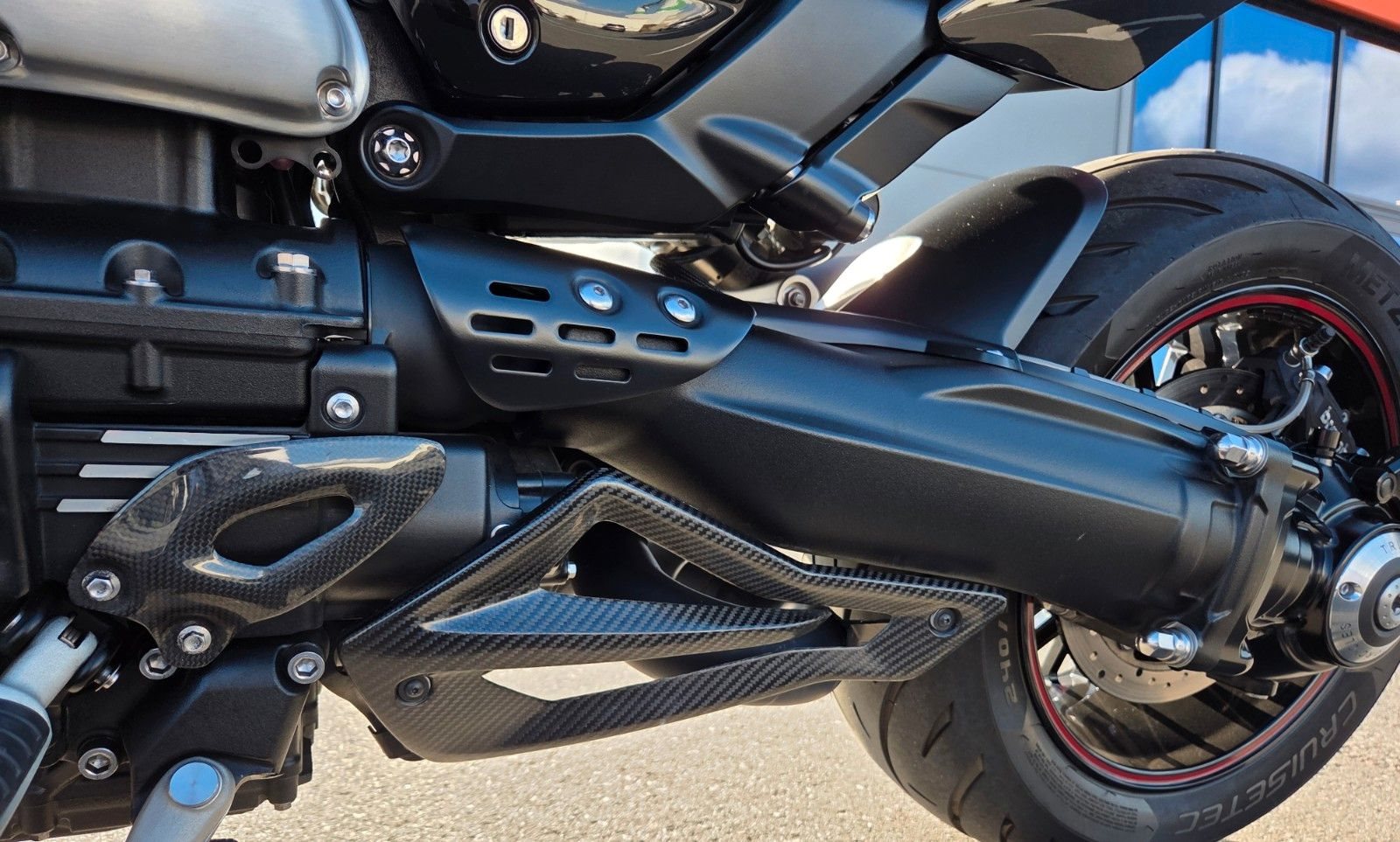 Zard Auspuff, Lenkerendspiegel Wunderkind, Seitlicher Kennzeichenhalter, Wunderkind, Mini Blinker vo./hi. Wunderkind, Fersenschutz Carbon, Hitzeschutz Carbon, 12V Steckdose
