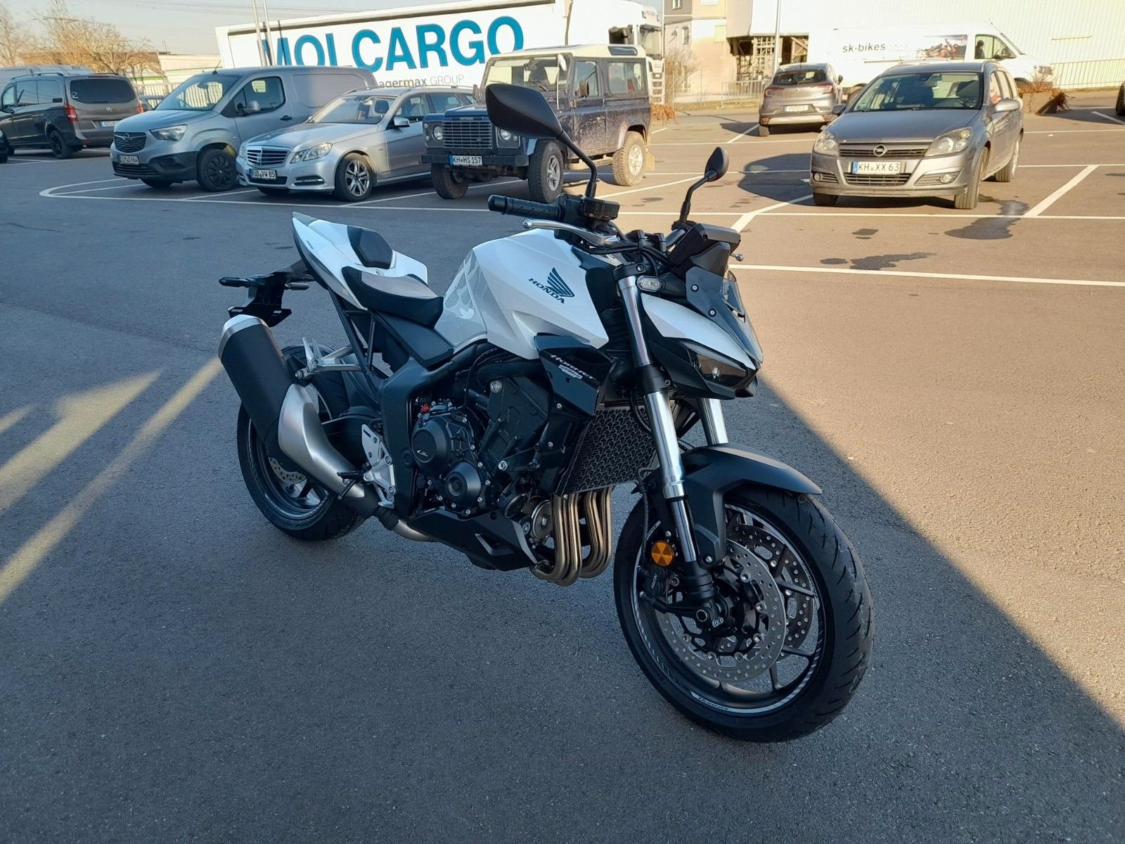Die Hornet-Familie ist jetzt vollständig und unser Topmodell sticht heraus. Die neue CB1000 Hornet mit ihrem Vierzylindermotor ist ein erstklassiges Naked Bike, das den Asphalt zum Glühen bringt. Throttle By Wire sorgt für präzise Kontrolle, während das Fahrwerk mit der einstellbaren SHOWA 41mm SFF-BP Upside-Down-Gabel und dem Pro-Link-Federbein ausgestattet ist. Die unverfälschte, aggressive Streetfighter-Attitüde wird durch einen markanten LED-Doppelscheinwerfer unterstrichen. Das 5-Zoll TFT-Farbdisplay und die Honda RoadSync-Konnektivität sorgen für die nötigen Informationen. Kann es losgehen?