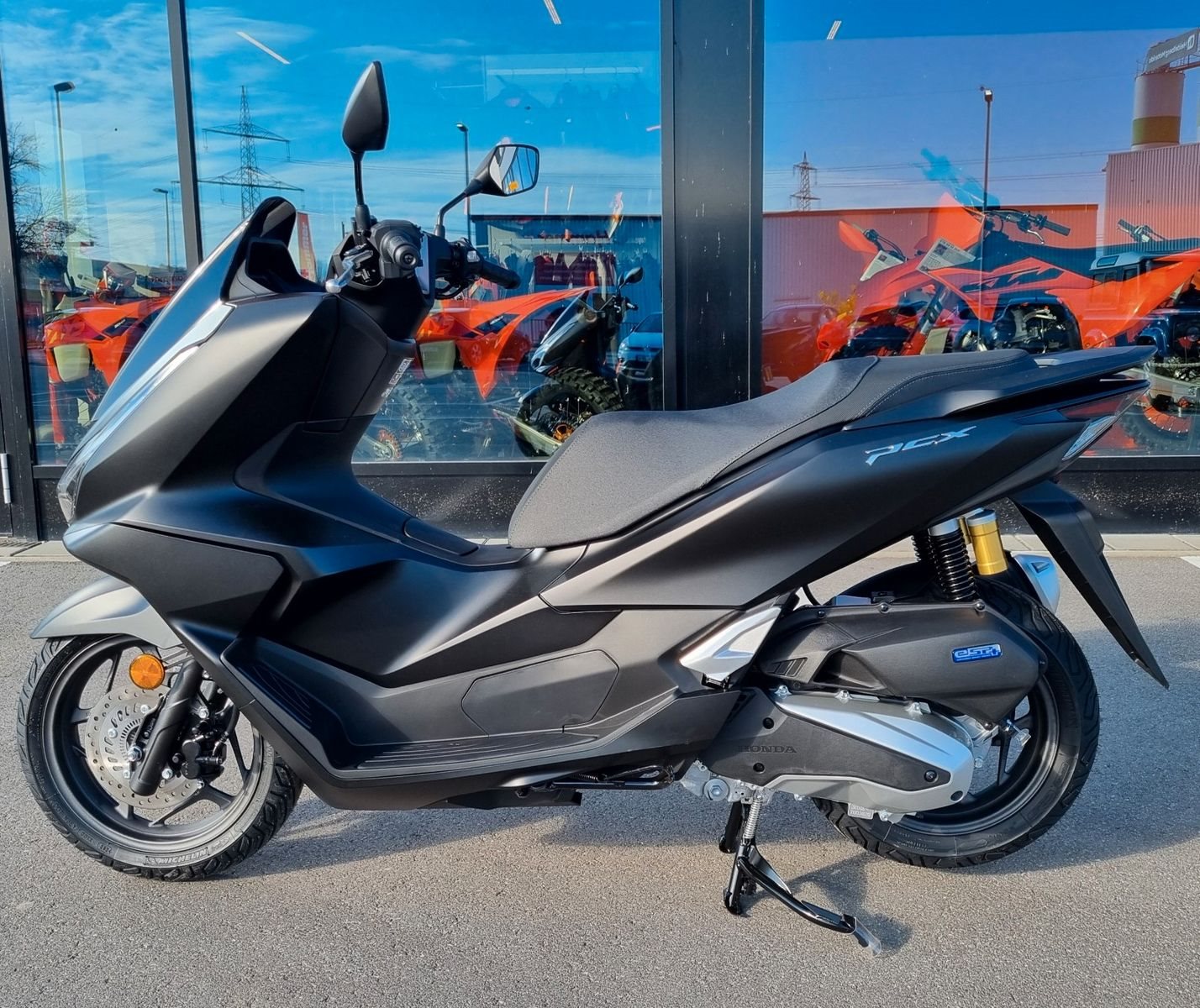 Das ist der PCX125. Aber besser. Angetrieben von einem flüssigkeitsgekühlten 4V-Motor, der eine ruhige Beschleunigung liefert und dabei einen erstaunlich niedrigen Kraftstoffverbrauch aufweist. Das intelligent aktualisierte Styling besticht durch futuristische Linien und einen noch umfassenderen Windschutz, aber auch durch eine aktualisierte Scheibenbremse am Hinterrad für verbesserte Bremsleistung. Der neue PCX125 DX verfügt über einen 5-Zoll TFT-Bildschirm mit Honda RoadSync-Smartphone-Konnektivität und intuitiver Lenker-Bedienung sowie über eine aktualisierte hintere Untertankaufhängung für eine noch ruhigere Fahrt in der Stadt.