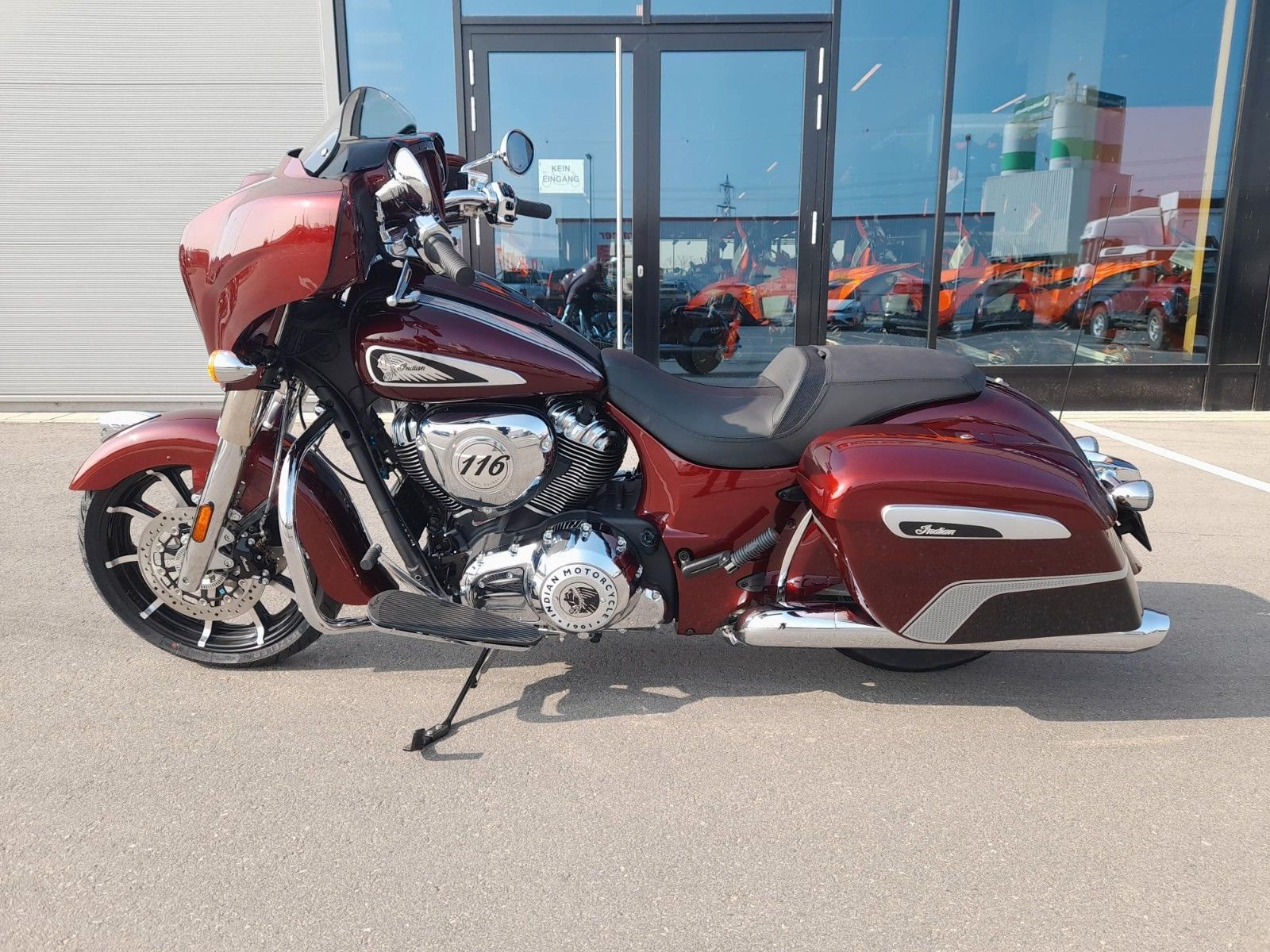 ERSTKLASSIGE AUSSTATTUNG Die Chieftain Limited ist serienmäßig mit LED-Beleuchtung, schlüsselloser Zündung, Tempomat, elektrisch verschließbaren Seitenkoffern, ABS und Reifendruckkontrolle ausgestattet. 7-Zoll-Touchscreen mit RIDE COMMAND inkl. Apple CarPlay-Integration; elektrische Windschutzscheibe; Highway Bars; Vinyl-Rogue-Sitz; Reifendrucküberwachung; fernbedienbare Hard Saddlebags; wählbare Fahrmodi; Deaktivierung des hinteren Zylinders; ABS; Tempomat; schlüssellose Zündung; 100-Watt-Audiosystem mit AM/FM, Bluetooth, USB, Smartphone-kompatiblem Eingang; 12-V-Ladeanschluss