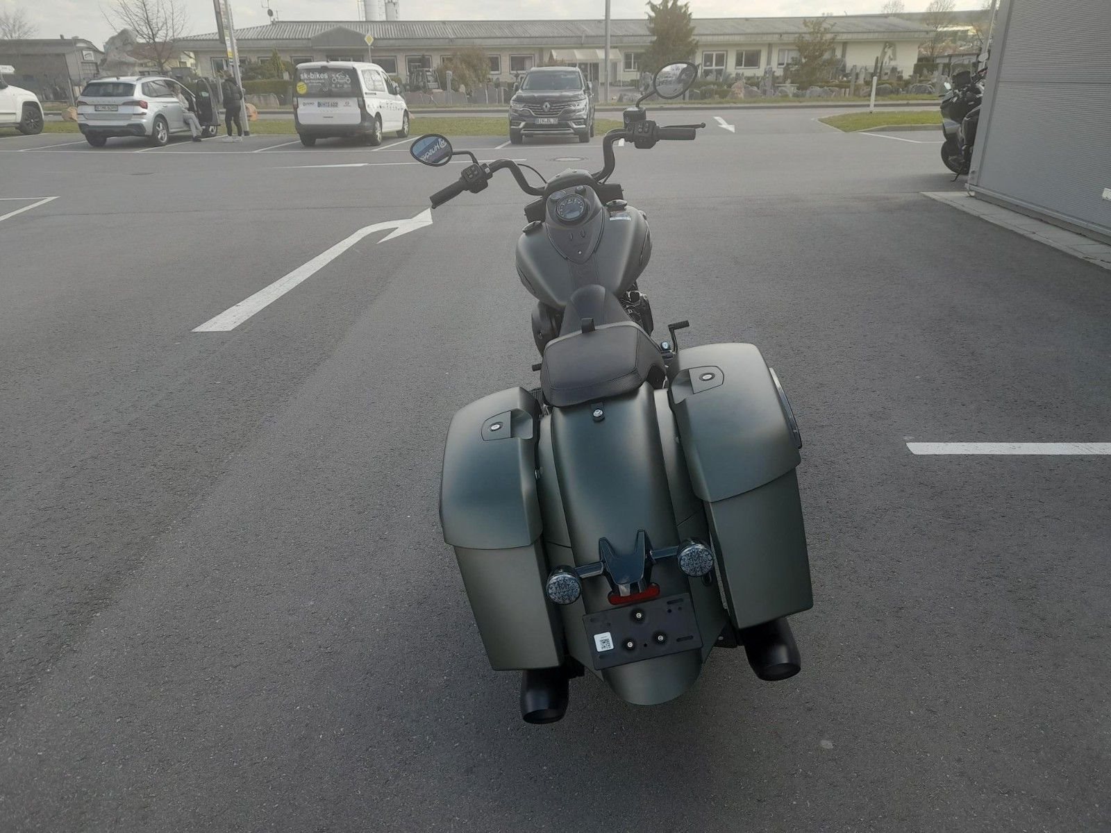 Die Indian Springfield Dark Horse rückt deine dunkle Seite ins Rampenlicht. Das geheimnisvoll düstere Finish, die zeitgemäße Interpretation des klassischen Stromlinien-Looks und der mächtige V-Twin haben einen gemeinsamen Nenner: Power.Thunderstroke 116 V-Twin-Motor