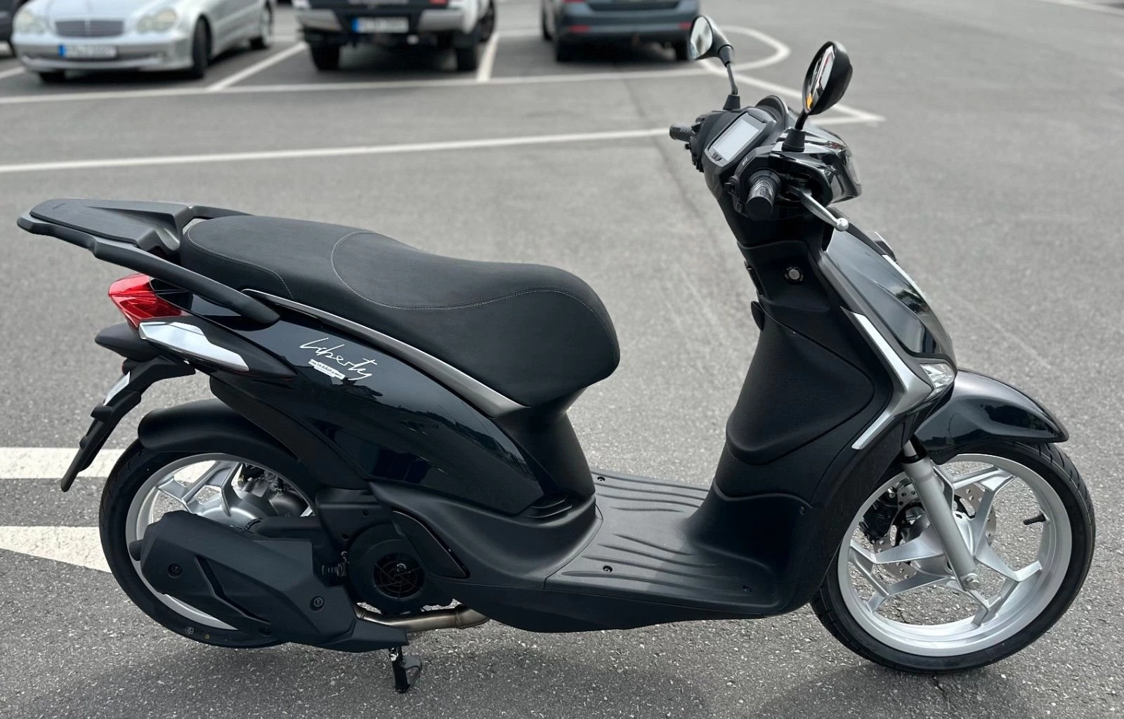 Stets im Liberty StilDas elegante und raffinierte Design des Piaggio Liberty fällt sofort ins Auge, dank der zentralen Krawatte im Waben-Stil, die eine starke Verbindung zu anderen Modellen der Piaggio-Familie herstellt. Die kompakten und dynamischen Linien bieten ein perfektes Gleichgewicht zwischen der robusten Front und dem stromlinienförmigen Heck, wo der Aluminiumgepäckträger dem Profil einen Hauch von Klasse und Kontinuität verleiht. Mattschwarze Details an den Spiegeln, dem Auspuff und dem Gepäckträger verschmelzen mit der satinierten Oberfläche der Räder, des Logos und der Blinker und verleihen dem Piaggio Liberty einen anspruchsvollen und modernen Look.