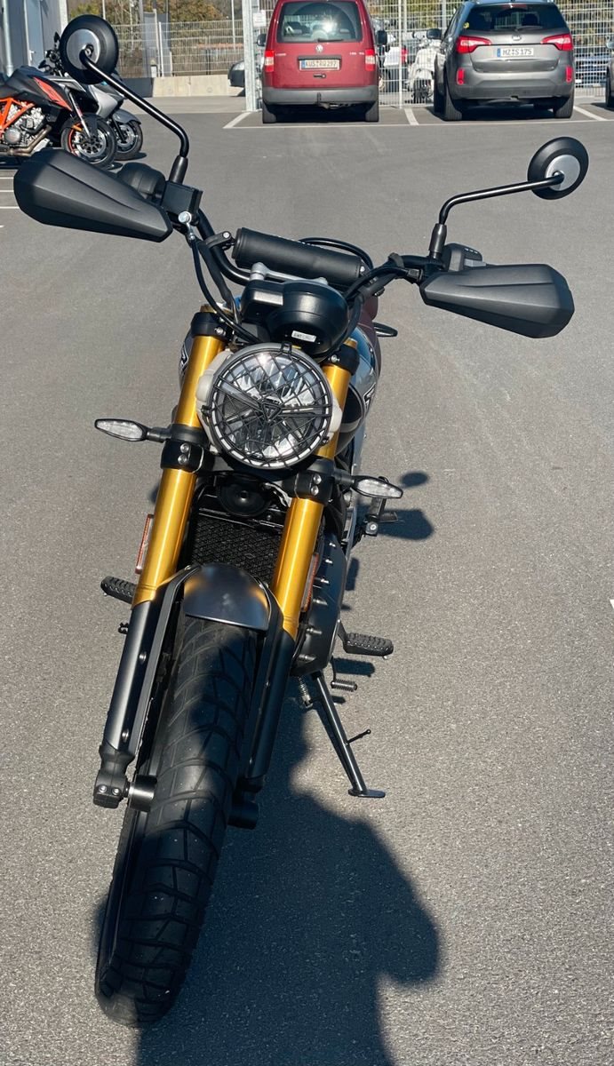 Die Scrambler 400 X ist ein erfrischender Neuzugang in der Scrambler-Familie von Triumph und eröffnet einer ganz neuen Generation das Fahrerlebnis der modernen Klassiker von Triumph.Mit ihrer zeitlosen Scrambler-Silhouette und der unverwechselbaren, gerippten Sitzbank bietet die Scrambler 400 X den unverkennbaren Stil einer Triumph, kombiniert mit hochwertiger Verarbeitung und erstklassiger Ausstattung voller moderner Fahrtechnologie.Der in Hinckley konstruierte Einzylindermotor erzeugt den für Triumph typischen charaktervollen und reaktionsschnellen Antrieb mit klassenbester Leistung und Drehmoment.Die souveräne Sitzposition mit breitem Lenker sorgt in Verbindung mit dem Scrambler-spezifischen Fahrwerk für Komfort auf der Straße und im Gelände.Die hochwertige Aufhängung mit 150 mm Federweg und der Doppelkolben-Bremssattel gewährleisten ein präzises, agiles und intuitives Handling und helfen sowohl neuen als auch erfahrenen Fahrern, das volle Potenzial der Scrambler 400 X voll auszuschöpfen.