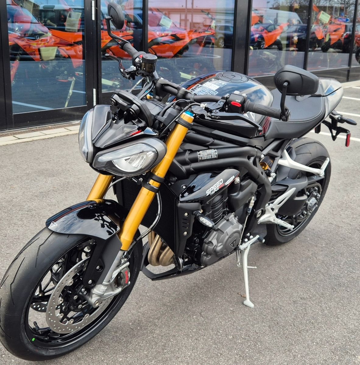 Erlebe die ultimative Speed Triple. Die unglaubliche Performance des Dreizylindermotors, die Speerspitze von präzisem Handling und überlegener Technik und das legendäre Speed Triple Design.
