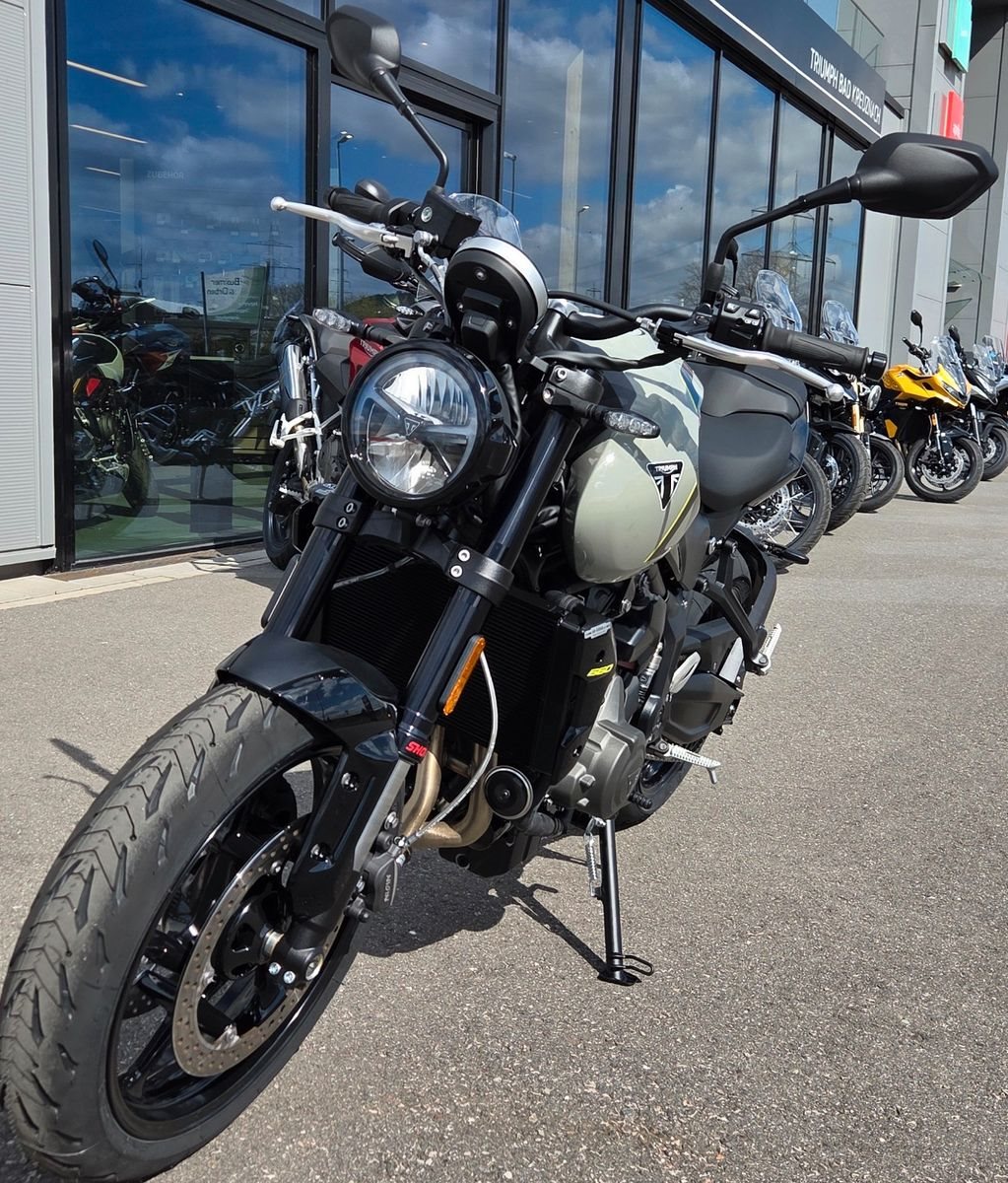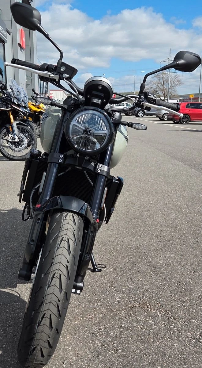 Fahrerorientierte Technik. Alles Wichtige - nichts Überflüssiges. Neigungswinkelabhängiges ABS und Traktionskontrolle, 3 Fahrmodi sowie der Triumph Schaltassistent für kupplungsloses Hoch- und Runterschalten.