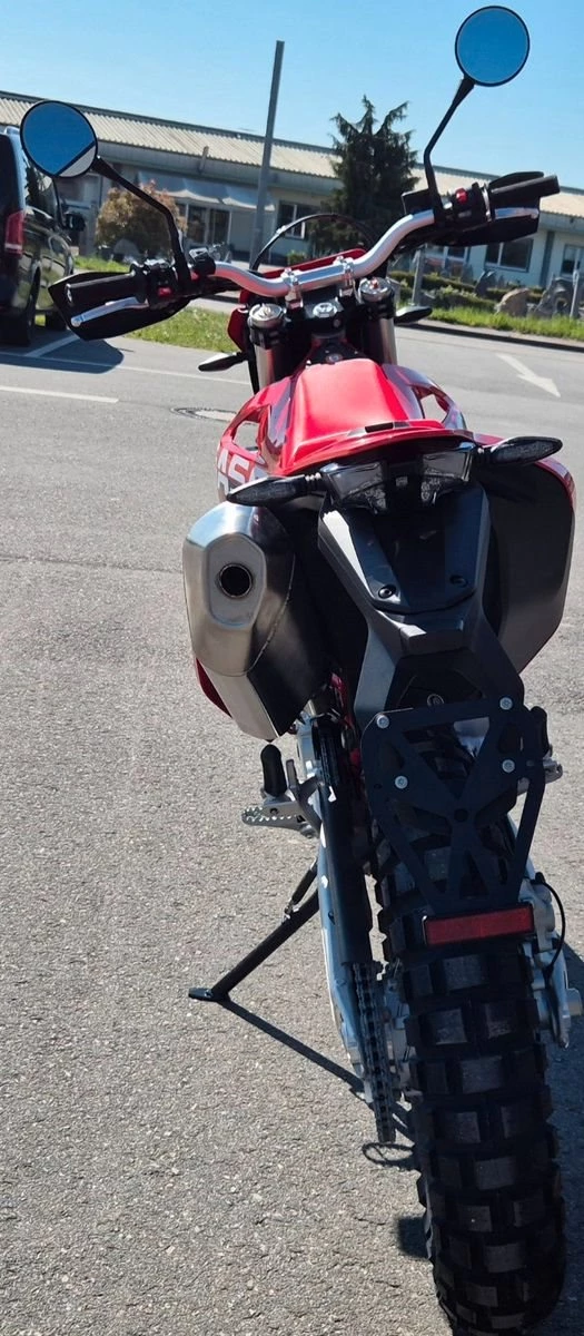 Die ES 700 ist eine spritzige 1-Zylinder-Enduromaschine, ein großvolumiges Bike, das sich perfekt für gemischtes Terrain eignet. Für die Entwicklung der GASGAS ES 700, unserem ersten Streetbike, haben wir Inhouse-Fachwissen, neue Ideen und die modernste Technologie genutzt, um ein Bike zu bauen, das ein charakteristisches, spielerisches Fahrerlebnis bietet. Die Leistung des 1-Zylinder-Motors mit 74 PS und 692,7 cm Hubraum wird über ein enorm cooles Ride-by-Wire-System geliefert, das eine knackige Gasannahme und eine enorm präzise Abgabe der linearen Motorleistung gewährleistet. Zudem ist das Bike mit den neuesten elektronischen Fahrerassistenzsystemen ausgestattet. So kannst du die ES 700 genau auf deine Anforderungen zuschneiden. Mit dem hochmodernen ABS und den Bremsen von Brembo hast du immer volle Kontrolle. Und dazu noch bietet die ES 700 ein immens langes Serviceintervall von 10.000 Kilometern. Du kannst also wirklich lange Strecken abreißen, bevor du zum Händler musst.