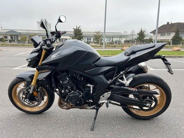 Die Hornet-Familie ist jetzt vollständig und unser Topmodell sticht heraus. Die neue CB1000 Hornet mit ihrem Vierzylindermotor ist ein erstklassiges Naked Bike, das den Asphalt zum Glühen bringt. Throttle By Wire sorgt für präzise Kontrolle, während das Fahrwerk mit der einstellbaren SHOWA 41mm SFF-BP Upside-Down-Gabel und dem Pro-Link-Federbein ausgestattet ist. Die unverfälschte, aggressive Streetfighter-Attitüde wird durch einen markanten LED-Doppelscheinwerfer unterstrichen. Das 5-Zoll TFT-Farbdisplay und die Honda RoadSync-Konnektivität sorgen für die nötigen Informationen. Kann es losgehen?