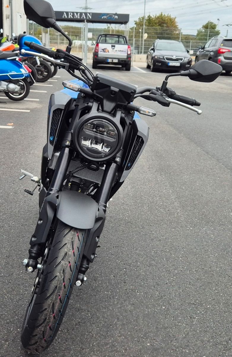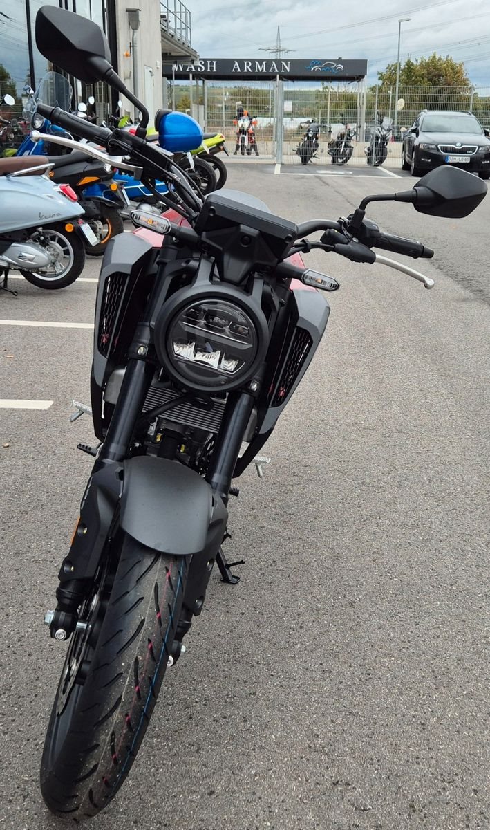 Die CB125R vereint konzentrierte Leistung mit einer eleganten Silhouette und bietet ein aufregendes Fahrerlebnis für junge Fahrer. Sie ist die kleine Schwester der genialen CB1000R und gehört damit zur Neo Sports Café-Familie. Das markante Design mit dem Stahlrohrrahmen ist ein echtes Statement. Ein hochmodernes LCD-Cockpit und LED-Komplettbeleuchtung sind Premium-Merkmale. Aber worauf es wirklich ankommt, ist die zusätzliche Leistung des neuen 125-cm-DOHC-Motors und die präzise Abstimmung der Showa SFF-BP USD-Gabel.