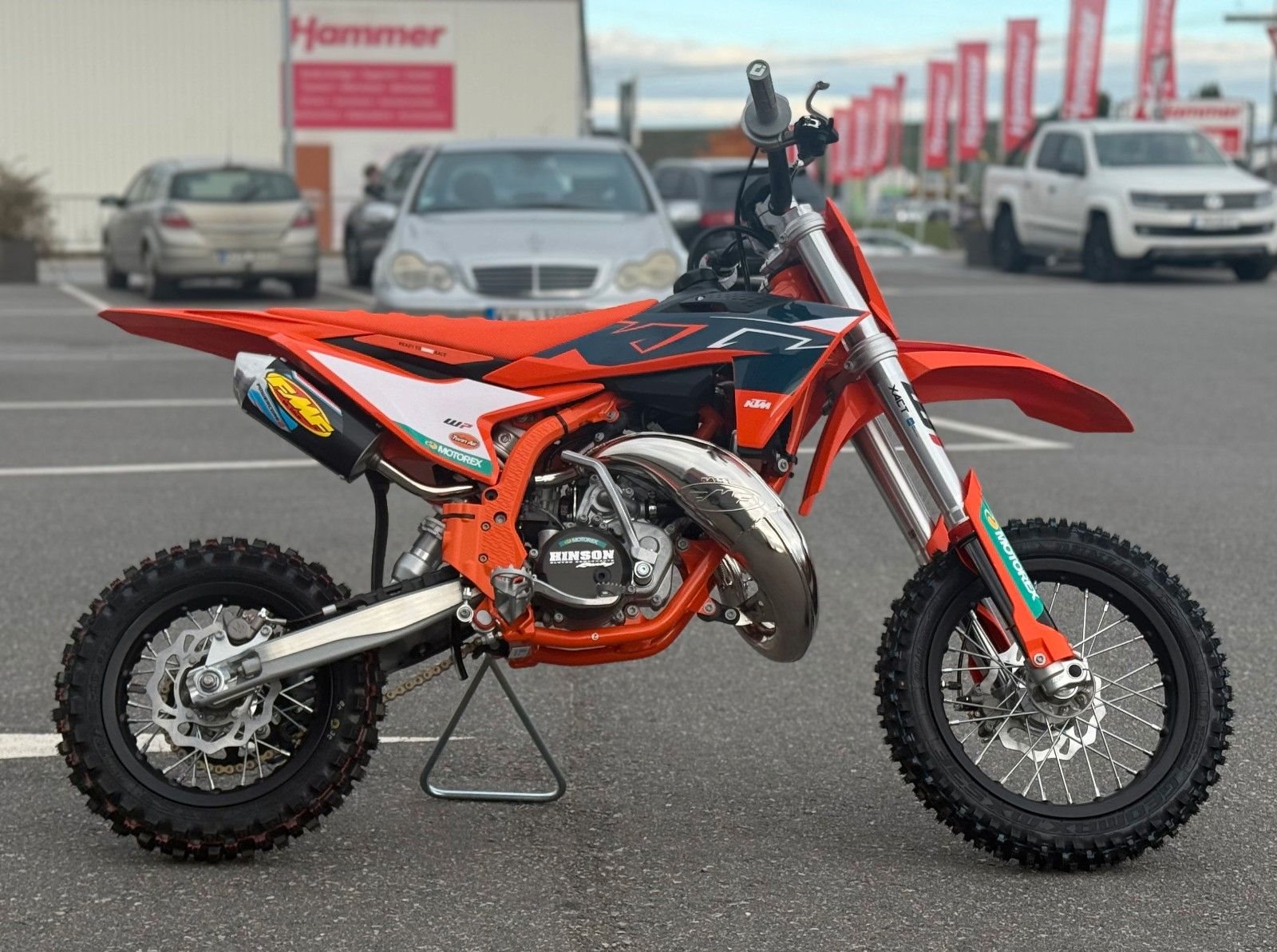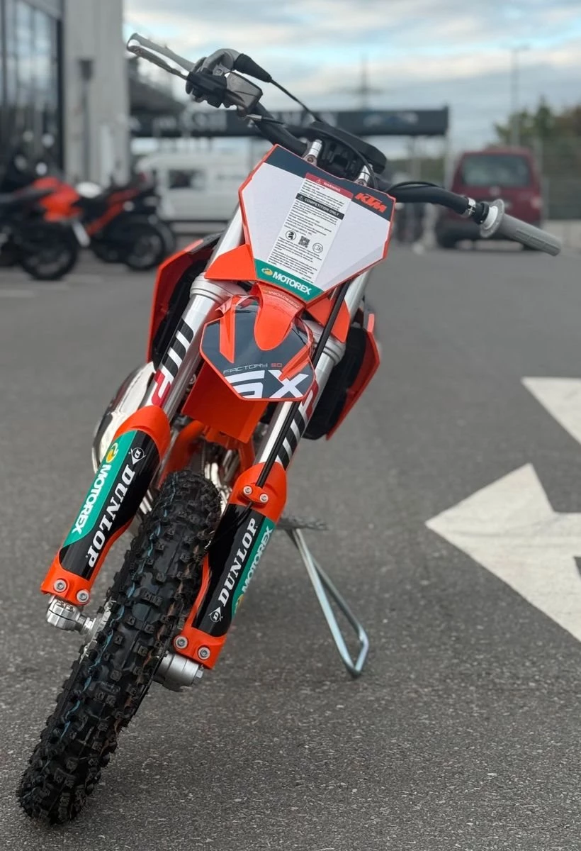 Rennsport schafft Emotionen und Fans, und diese Leidenschaft für Wettbewerb und Spitzenleistungen kann in jedem Alter beginnen. Die KTM 50 SX FACTORY EDITION ist unser Versprechen an die Zukunft des Motorradsports. Zähle auf die volle READY TO RACE-Überlegung mit einem fortschrittlichen Stahlrahmen und einem Motor, der dich nicht enttäuschen wird. Das Bike verfügt über führende Komponenten wie DUNLOP Geomax MX53 Reifen, eine FMF Auspuffanlage, eine neue 35 mm WP XACT AER Gabel, ein WP XACT Monoshock und eine überarbeitete hydraulische Formula Bremsanlage. All dies, zusammen mit den wichtigsten Ähnlichkeiten mit den großen Motocross-Modellen, dem hohen Qualitätsniveau und der revolutionären Höhenverstellbarkeit. Und nicht zu vergessen: das atemberaubende Factory-Design für echtes Werksfeeling.