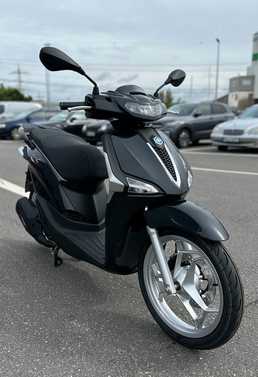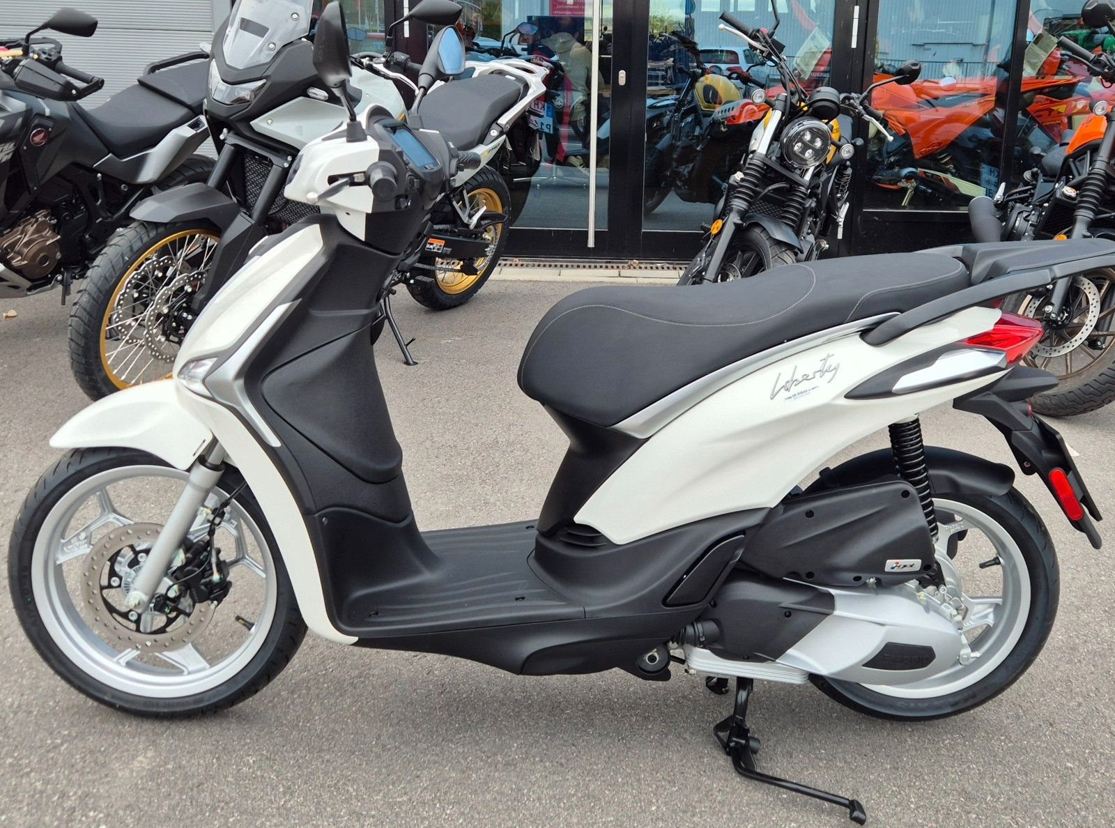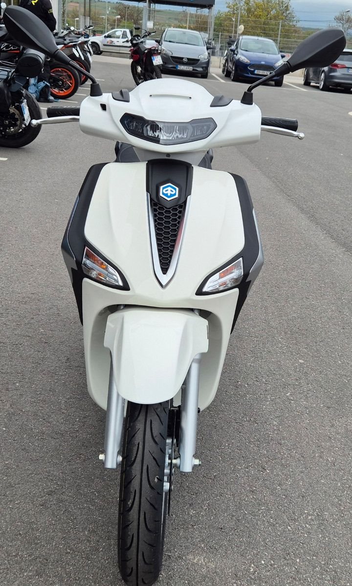 Das elegante und raffinierte Design des Piaggio Liberty fällt sofort ins Auge, insbesondere durch die "Krawatte" mit wabenförmigem Gitter, die eine starke Verbindung zur Piaggio-Designfamilie herstellt. Die kompakten und dynamischen Linien sorgen für ein perfektes Gleichgewicht zwischen der robusten Frontpartie und dem schlanken Heck, wo der Aluminium-Gepäckträger einen Hauch von Klasse und Kontinuität verleiht. Mattschwarze Details an Spiegeln, Auspuff und Gepäckträger fügen sich harmonisch mit den satinierten Akzenten an Felgen, Logo und Blinkern zusammen und verleihen dem Piaggio Liberty eine anspruchsvolle und moderne Ästhetik.