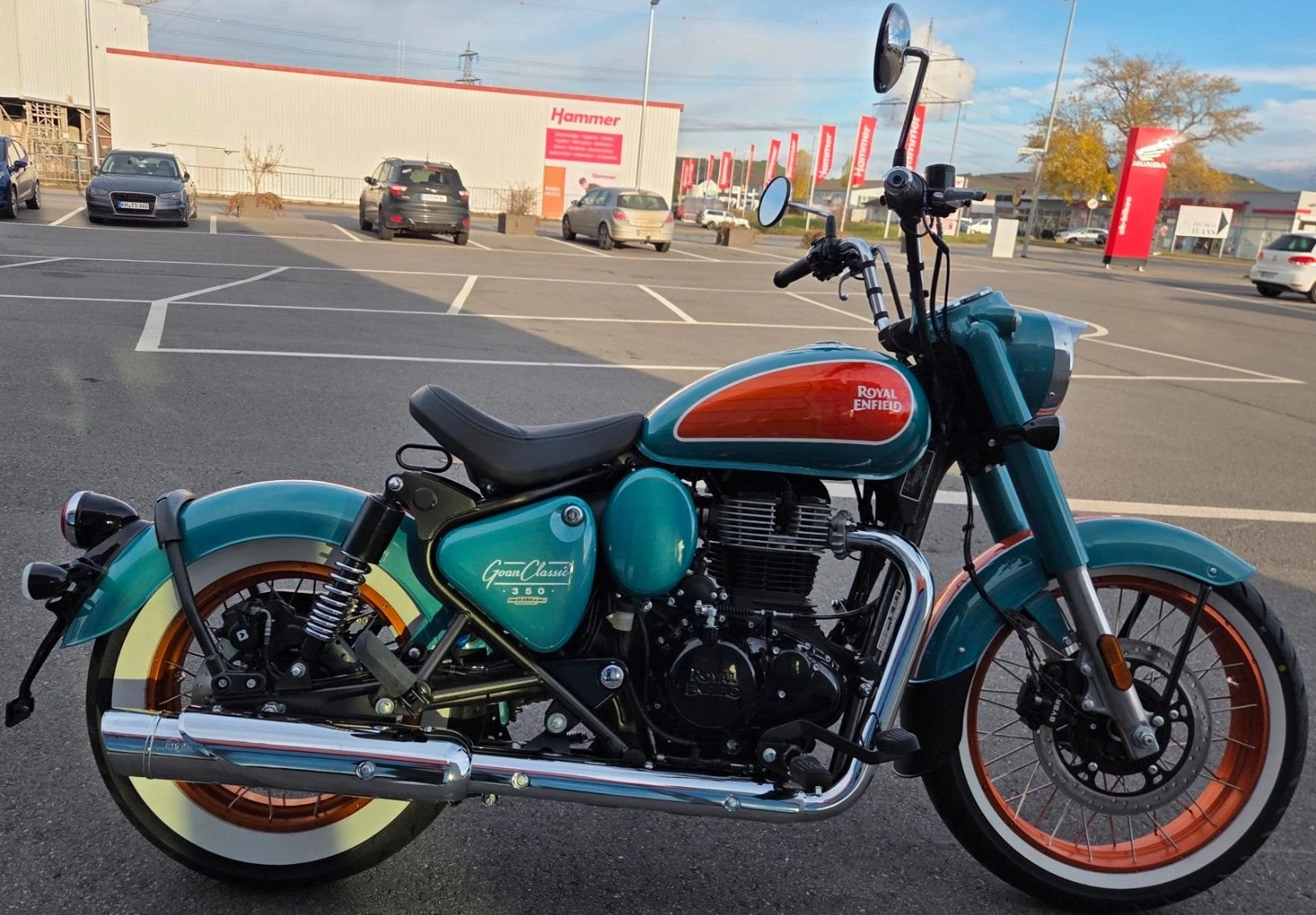 Goan Classic 350 Technische SpezifikationenDie Seele eines Hippies. Der Körper eines Bobbers. Der Goan Classic 350 ist für einfache, mühelose Fahrten vom Strand zur Hütte und zurück konzipiert. Der Goan Classic 350 wird von unserem 349-cm-J-Plattform-Motor angetrieben, der ihm seinen charakteristischen Auspuff verleiht. Mit einem maximalen Drehmoment von 27 Nm und einer maximalen Leistung von 20,2 PS sorgt er für sanfte Beschleunigung und müheloses Fahren in der Stadt, entlang der Küste oder bergauf.