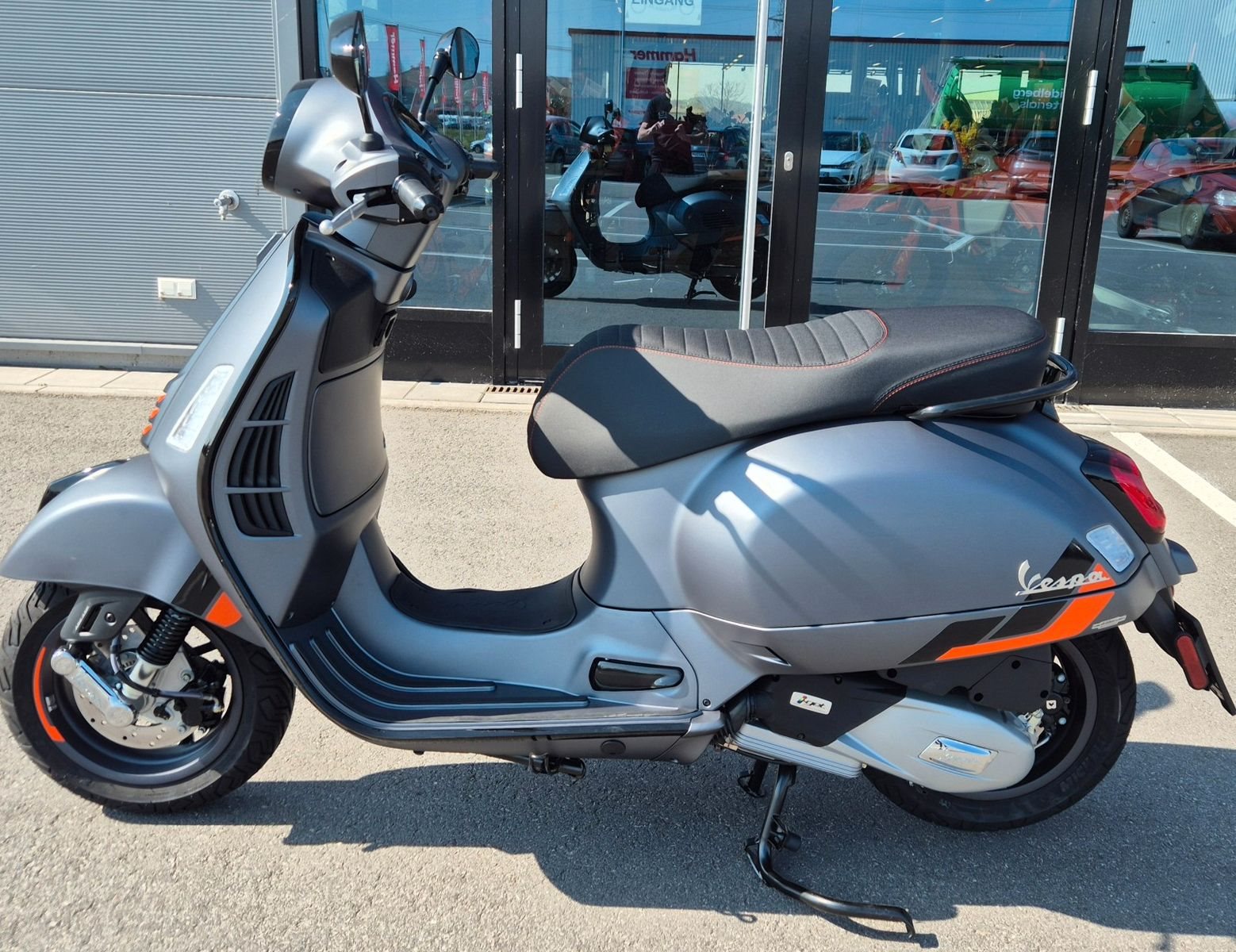 Die richtige Ausstrahlung für jede HerausforderungDie Vespa Gts SuperSport überzeugt durch ihre glänzenden und matten Farben, die durch Details im Carbon-Look und glänzend schwarze Zierleisten ergänzt werden. Die Sitzbank mit hochwertigen Materialien und Kontrastnähten unterstreicht ihren starken Charakter. Mit der Vespa Gts SuperSport wird jeder Tag zu einem aufregenden Abenteuer.