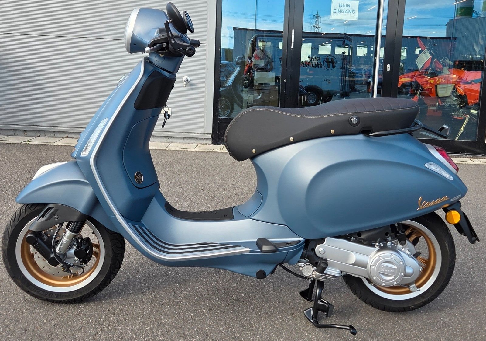 Stil, der auf Innovation basiertDie Vespa Primavera Officina 8 bringt das Erbe der Vespa mit Eleganz und einem modernen Touch neu auf die Straße. Die intensive blaue Lackierung ist von den Industriemaschinen in der historischen Werkstatt 'Officina 8' des Piaggio Werks inspiriert. Eine Hommage an die Tradition, die zu einem unverwechselbaren Symbol für Stärke und Identität geworden ist. Die metallenen Details, die polierten Messingnieten und die Kontrastnähte auf dem Sattel zeugen von der Genialität, Sorgfalt und Leidenschaft, die Vespa seit jeher auszeichnet.