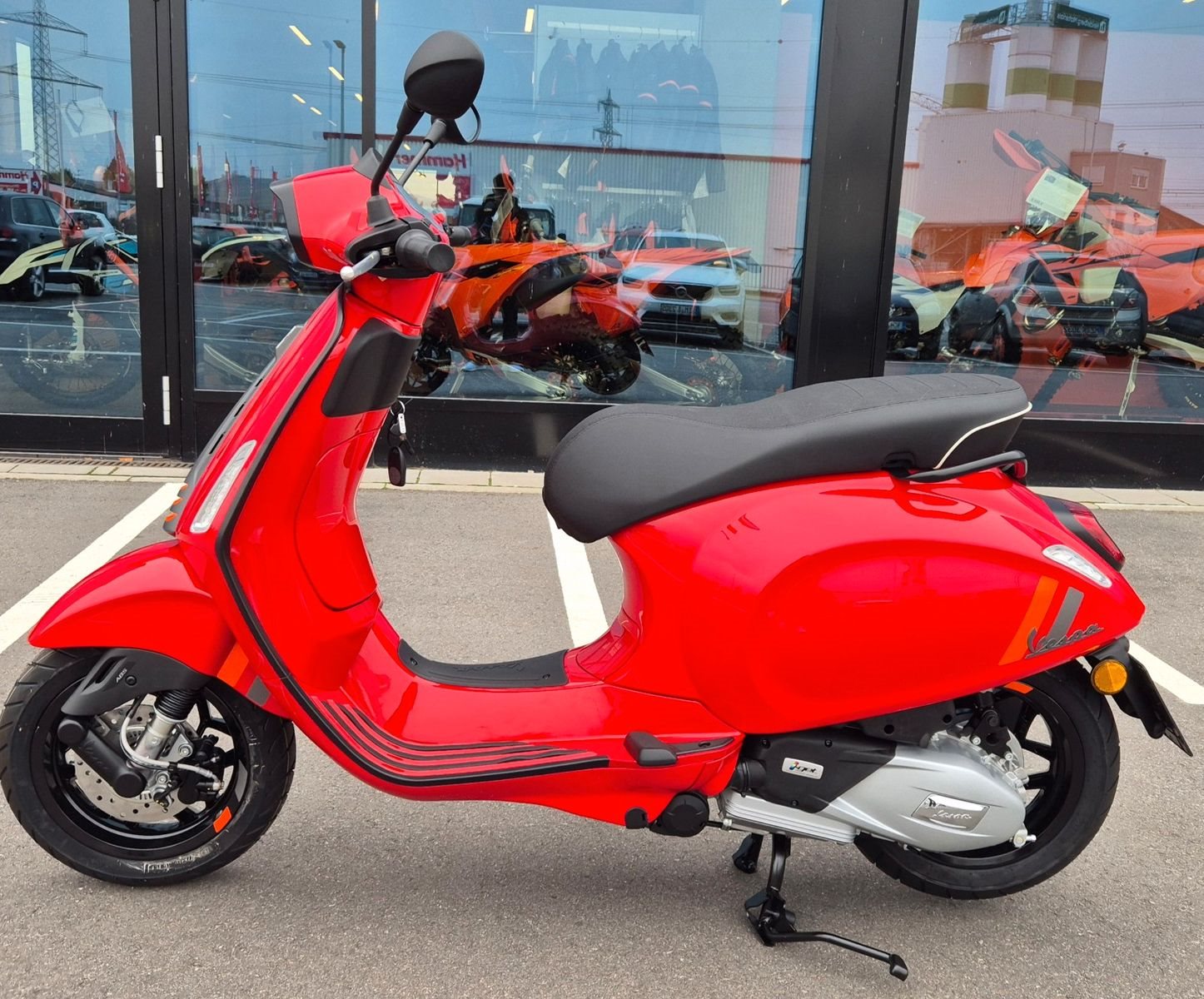 Ein faszinierender LookDie Vespa S Sprint verkörpert den unverwechselbaren Charakter der Generationen von Vespa Sportmodellen, die in jedem Umfeld einen Hauch von Dynamik versprühen. Ihr sportlicher Look wird durch kontrastierende Grafiken unterstrichen, während schwarze Details wie der rechteckige Rahmen um den Scheinwerfer und die neu designten 6-Speichen-Aluminiumfelgen für eine raffinierte Note sorgen.